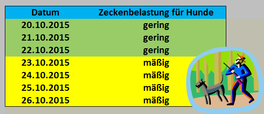 Nach den kalten Temperaturen der letzten Woche sinkt das Zeckenrisiko weiter ab. Doch Vorsicht: Mit der Milderung zum Ende des Monats und Anfang November werden viele Zecken im Flachland nochmals aktiv.