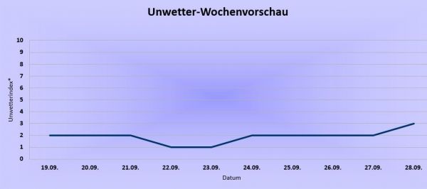 Die Risiken für Unwetter liegen in der kommenden Wetterwoche aller Voraussicht nach auf einem niedrigen Niveau. Nach dem aktuellsten Modelllauf steht eine oft wechselhafte erste Wochenhälfte mit teils nassen Witterungsabständen und deutlich kühleren Wetter als zuletzt an, bevor sich etwa ab Wochenmitte stabiles und oft sonniges Spätsommerwetter einstellt.