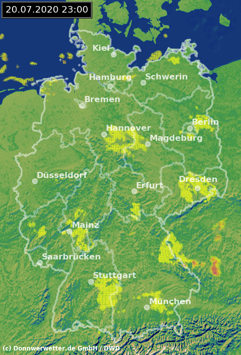Radarbild von Montag, 20.07.2020 um 23.00 Uhr