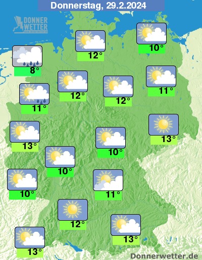 Donnerstag: In den Schalttag starten wir morgen früh zunächst einmal noch verbreitet mit Bodenfrost und lokalem Nebel oder Hochnebel. Löst sich dieser auf, können wir uns fast im gesamten Land über einen freundlichen letzten Februartag freuen - nur an der Nordseeküste und an Grenze Niedersachsen-NRW stört ein kleines Regenband.