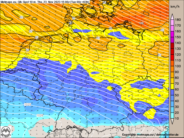 Bevor die Temperaturen ab Freitag in den Keller gehen, steht uns am Donnerstag nochmals ein sehr milder Spätnovembertag bevot: Ein Warmluftgebläse treibt die Temperaturen morgen bei teils stürmischem Wind auf 10 bis 13 Grad in der Spitze.