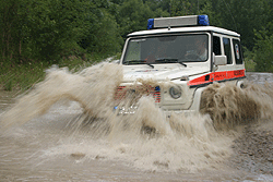 (Bild: Helfer der bayerischen Wasserwacht im Hochwassereinsatz bei Bad Tölz. DRK, Peter Knoblich)