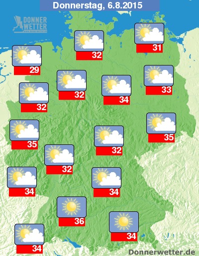 Doch auch im Rest des Landes liegen die Temperaturen mit Werten um 31 bis 37 Grad C auf höchstem Schwitz-Niveau.