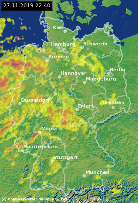 Radarbild von Mittwoch, 27.11.2019 um 22.40 Uhr