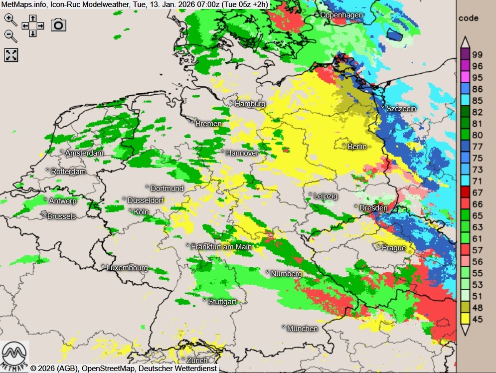 Bis zum Mittag wird sich die Glättelage mit steigenden Temperaturen aber auch in Mecklenburg-Vorpommern, Brandenburg, Bayern und Sachsen deutlich beruhigen.