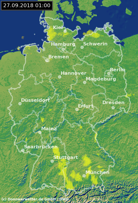 Radarbild von Donnerstag, 27.09.2018 um 01.00 Uhr