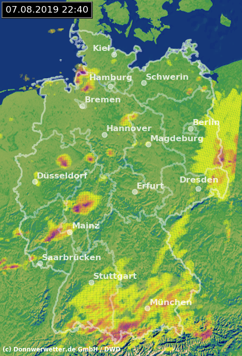 Radarbild von Mittwoch, 07.08.2019 um 22.40 Uhr