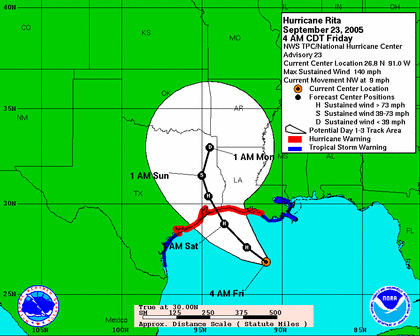 'Rita' wird voraussichtlich am Samstag morgen zwischen Galveston und der Grenze des Bundesstaates Louisana auf Land treffen: