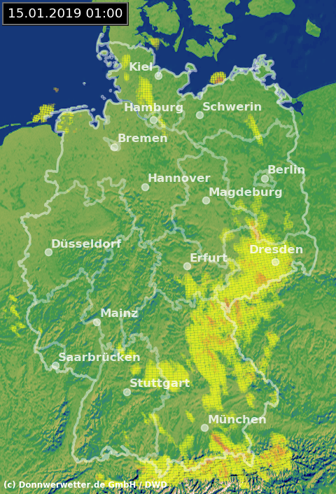 Radarbild von Dienstag, 15.01.2019 um 01.00 Uhr