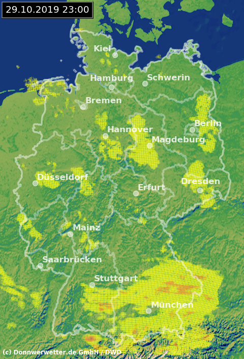 Radarbild von Dienstag, 29.10.2019 um 23.00 Uhr