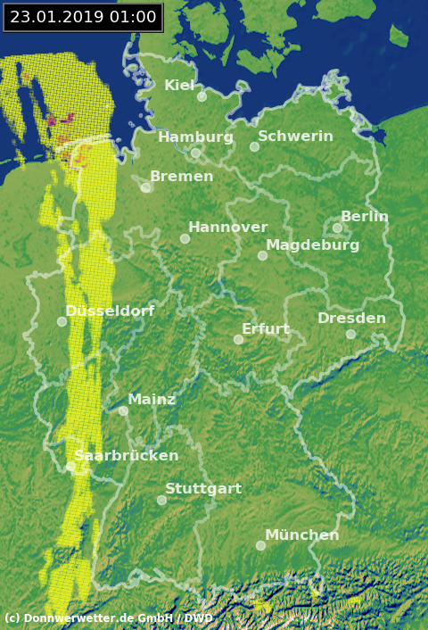 Radarbild von Mittwoch, 23.01.2019 um 01.00 Uhr