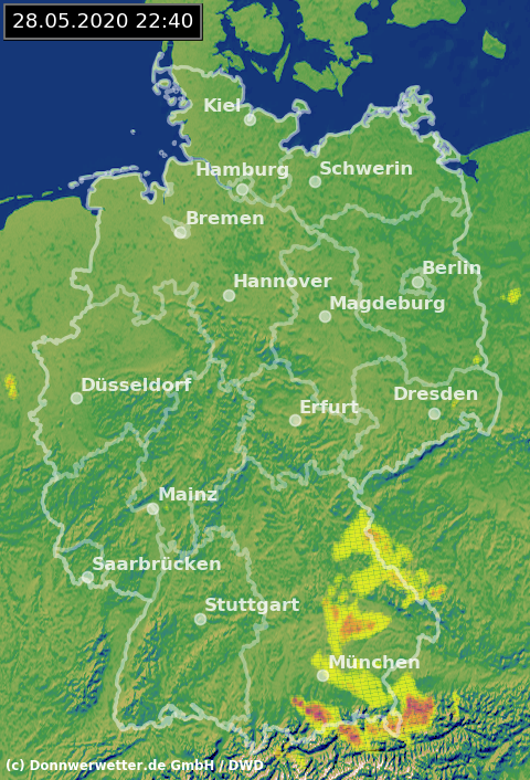 Radarbild von Donnerstag, 28.05.2020 um 22.40 Uhr