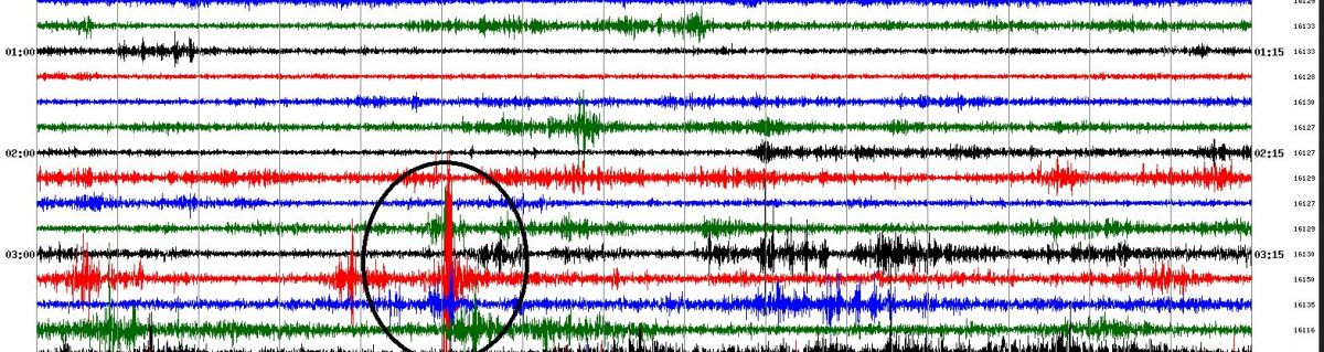 Das Seismogramm des Donnerwetter.de-Sensors (Raspberry Shake) in Bonn-Bechlinghoven zeichnete die feinen Bodenbewegungen deutlich auf: