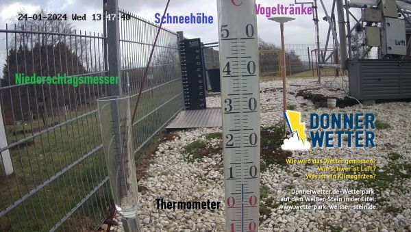 Neben der Schneehöhe und der Temperatur zeigt unsere Schnecam im donnerwetter.de-Wetterpark ab sofort auch die Niederschlagsmenge an. Weiterhin wurde die Lesbarkeit des analogen Thermometers verbessert.
