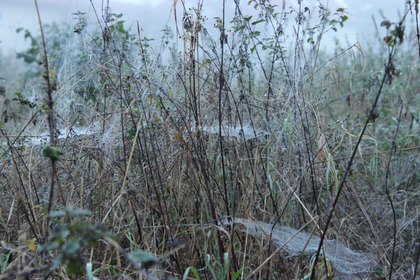 Heute morgen gibt es wieder Nebel und Hochnebel in Deutschland. Die Spinnennetze sind fein mit Tau überzogen. Tagsüber schafft es zeitweise die Sonne bei bis zu 18 Grad C.