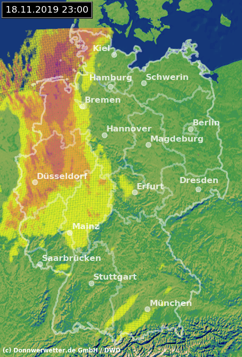 Radarbild von Montag, 18.11.2019 um 23.00 Uhr
