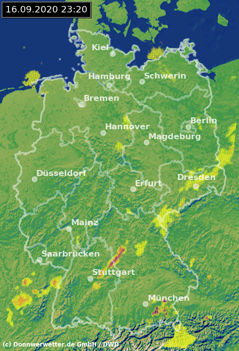 Radarbild von Mittwoch, 16.09.2020 um 23.20 Uhr