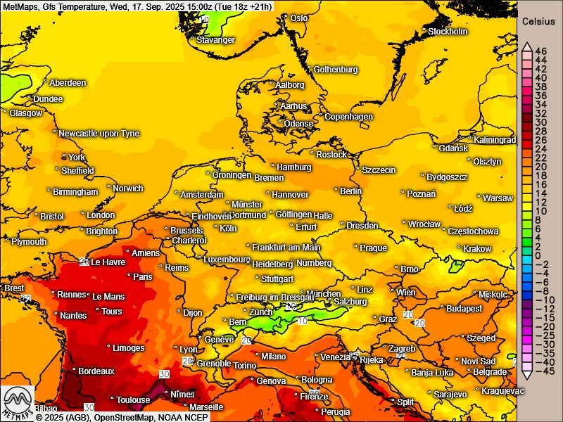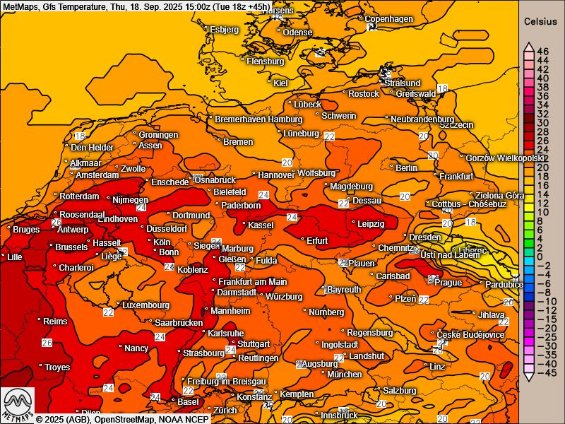 Bereits morgen gibt es schon mal einen Vorgeschmack auf den rückkehrenden Spätsommer mit Temperaturspitzen von ca. 25 Grad.