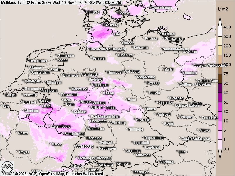 Eine Kaltfront des Tiefs "Talat" überquert heute Westeuropa, die Schneefallgrenze sinkt dabei ordentlich ab: Im südlichen Schleswig-Holstein und Hamburg kann es am Abend und in der Nacht verbreitet weiß werden. In den übrigen Regionen Deutschlands liegt die Schneefallgrenze bei 200 bis 300m über NN.