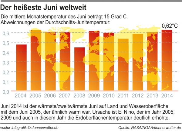 El Nino, mit warmen Pazifikwasser, sorgt für einen der wärmsten Juni aller Zeiten weltweit.