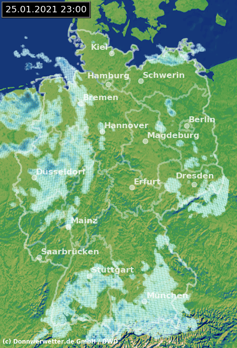Radarbild von Montag, 25.01.2021 um 23.00 Uhr