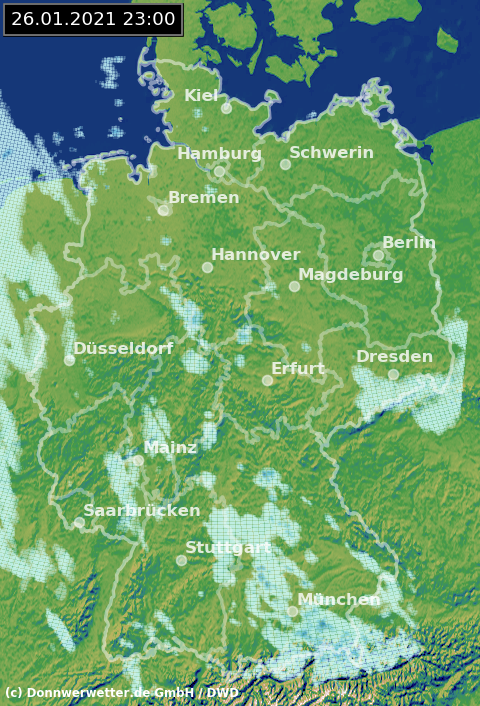 Radarbild von Dienstag, 26.01.2021 um 23.00 Uhr