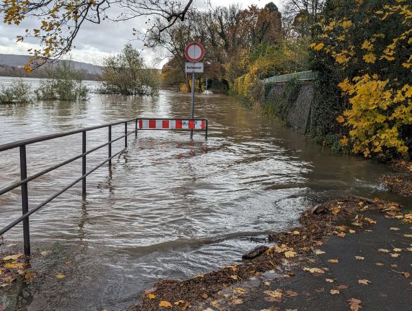 Die Fotos zeigen den Rhein bei Bonn am Samstag und Sonntag (18./19.11.2023) bei einem Pegel von knapp 660 cm am Sonntag.
