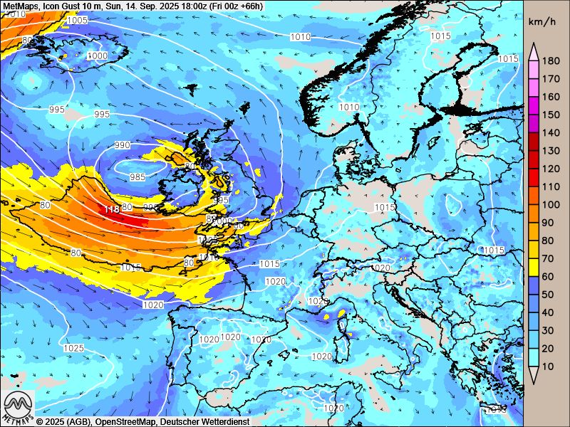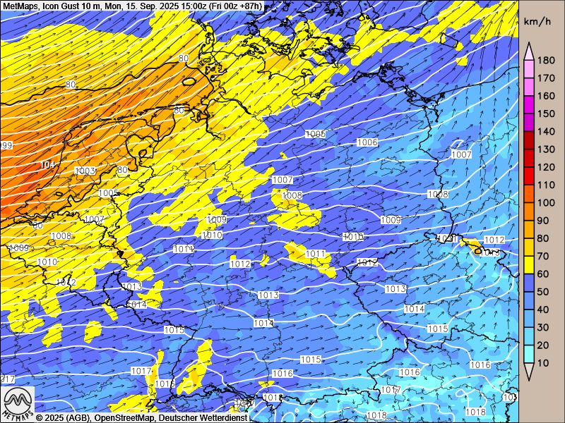 Die Böenkarten nach Icon für Sonntag und Montag: