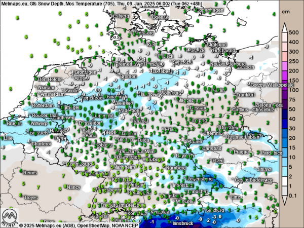 Am Donnerstag verlagert sich die Schneelage dann weiter nach Süden – winterlich wird es bis zum Wochenende dann in weiten Teilen Hessens sowie in Rheinland-Pfalz und später auch in Bayern und Baden-Württemberg.