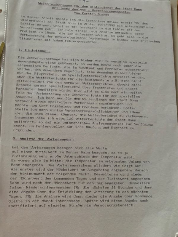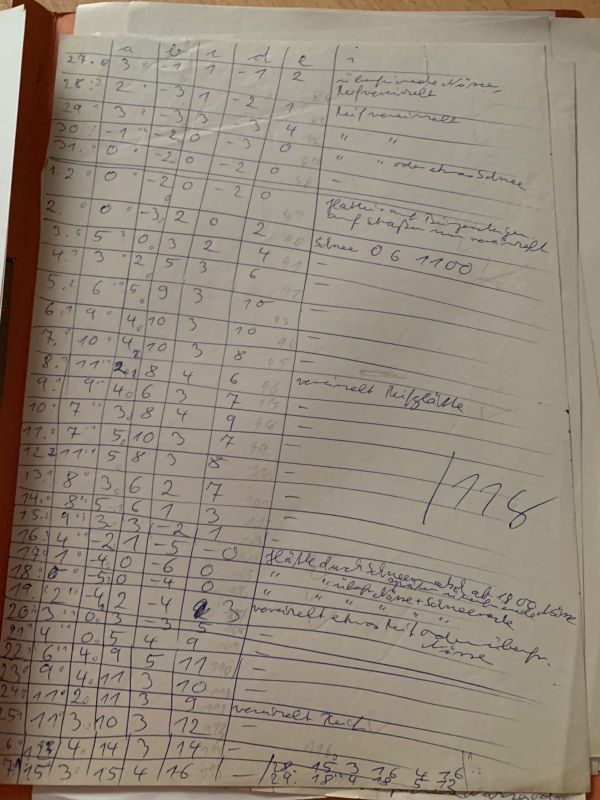 Handschriftliche Aufzeichnungen und Auswertungen zur Prognosegüte aus dem Winter 1991/1992, zu einer Zeit, als Onlineberichte noch Zukunftsmusik waren, fielen uns vor Kurzem in unserem historischen Archiv in die Hände (s. Fotos). Und was liegt da näher als ein Vergleich mit den Daten aus heutiger Zeit?