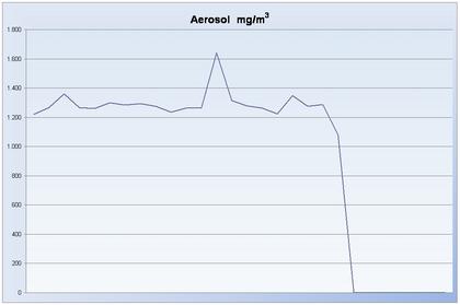 Die Graphik oben zeigt den Besuch eines Cafe’s in den frühen Abendstunden. Die Werte steigen beim betreten des Cafes auf über 4000 ug/m3 an. Draußen wurden zur gleichen Zeit 30 ug/m3 gemessen. Es zeigt, wie wichtig ein Rauchverbot in Cafe’s und Restaurants ist.
